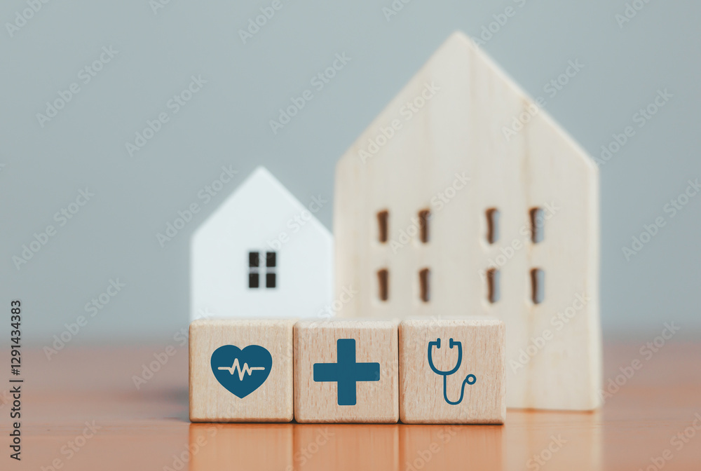 Insurance concept wooden blocks refer to various types of insurance such as insurance, travel, welfare, health insurance plans, home, car, travel, comprehensive coverage.