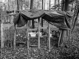 Aufbauten in einem Waldkindergarten im Winter