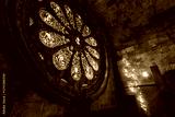 Historical rose window of Lisbon Cathedral, or simply the Se (Se de Lisboa), the oldest church in Lisbon, Portugal, built in 1147