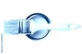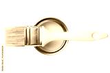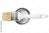 PNG, Paint, white paint in a metal can with a brush, top view, isolated on a white background