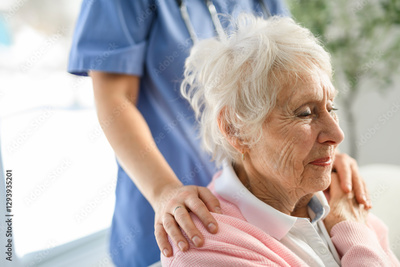 portrait of a young nurse doctor with a senior patient at home during a consultation