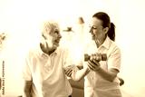 physiotherapist helping senior woman in clinic. Elderly woman undergoing physiotherapy treatment for injury