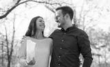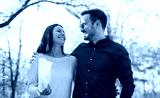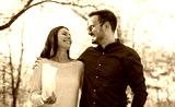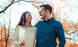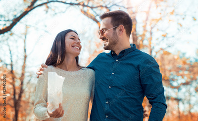 Loving couple on dating in autumn park. Love and romance.
