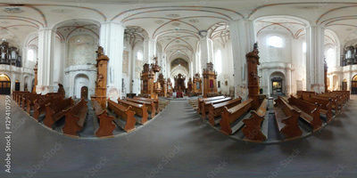 Church of St. Francis and St. Bernard interior 360 vr panorama, Vilnius, Lithuania