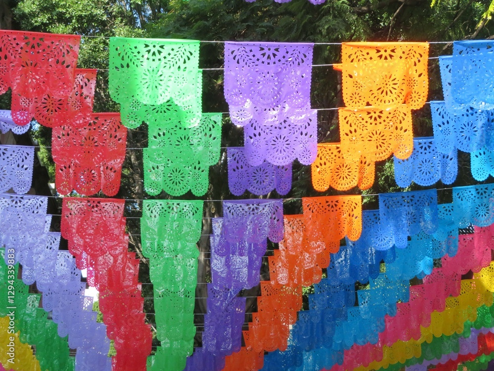 traditional mexican colorful paper garlands in the wind (papel picado)