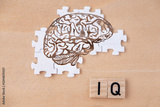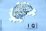 silhouette brain, word IQ, wooden letters, intelligence quotient on wooden background, quantitative science indicator expressing success, concept idea, level mind, intellectual achievements testing