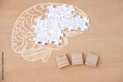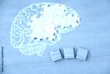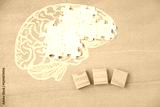 silhouette brain, intelligence quotient on wooden background, symbol education, quantitative science indicator expressing success, concept idea, level mind, intellectual achievements testing