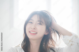 髪をかき上げる爽やかな女性のカメラ目線 ヘアケアや美容やビューティー