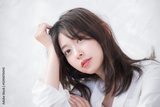 白シャツで髪をかき上げる爽やかな女性 ヘアケアや美容やビューティー アンニュイな表情 カメラ目線