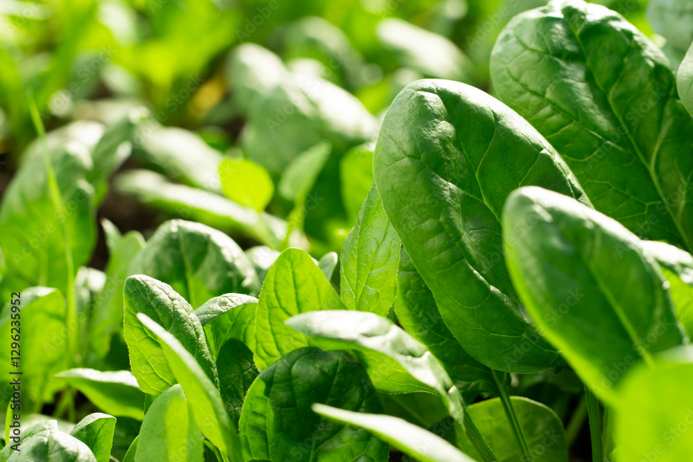 Juicy young spinach, natural background with leaves of healthy greens.