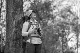 Senior woman is hiking outdoors, enjoying nature expression looks into the distance observing and possibly guide trekking and trail ecotourism adventure concept.