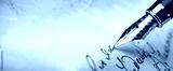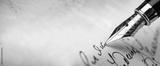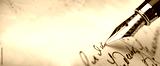 Fountain pen on an antique handwritten letter. Vintage nib pen and handwritten cursive style font copperplate, spencerian. Old history background. Retro style.