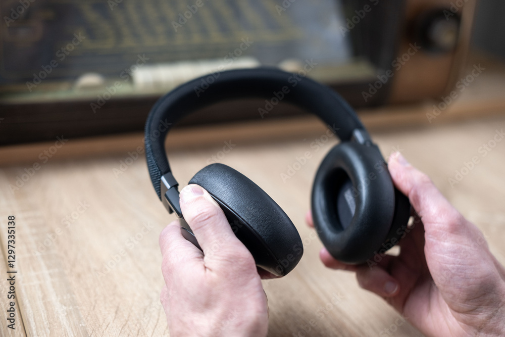 listen to old 60s radio, listen to old Vintage 60s radio, happily while listening to music, podcast, Retro aesthetic