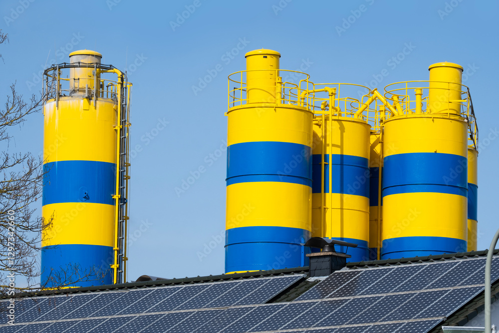 fully equipped cement plant, Large storage silos and production unit demonstrate scope contemporary concrete technology, industrial site for manufacturing