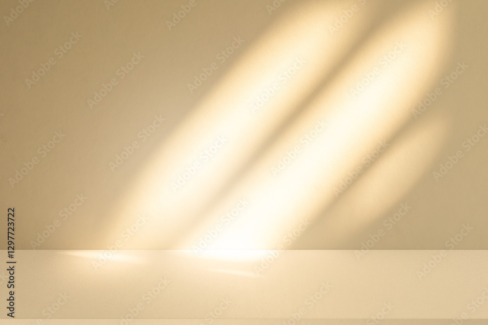 Wall interior background, studio and backdrops show products. with leaf shadow from window color beige and white. background for text insertion and presentation of product
