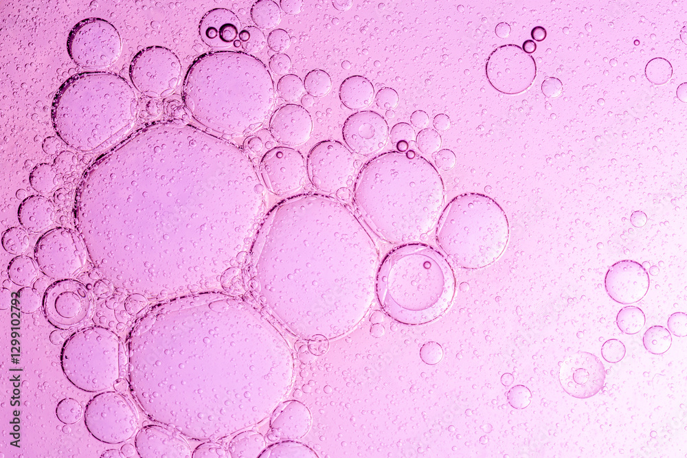 Pink macro bubbles background,Abstract pink oil bubbles background. Cosmetic liquid beauty product.