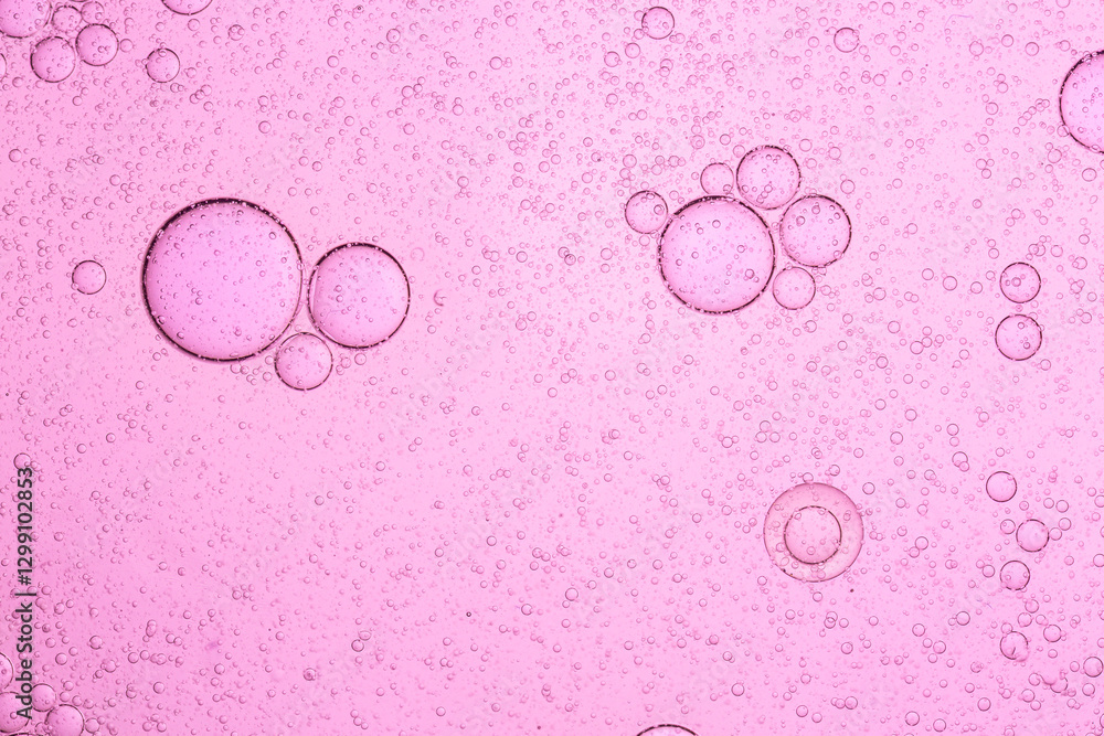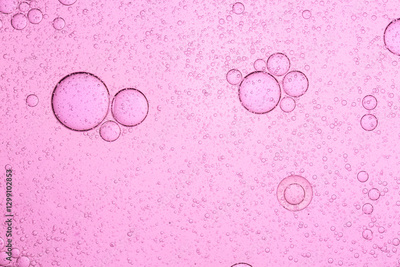 Pink macro bubbles background,Abstract pink oil bubbles background. Cosmetic liquid beauty product.