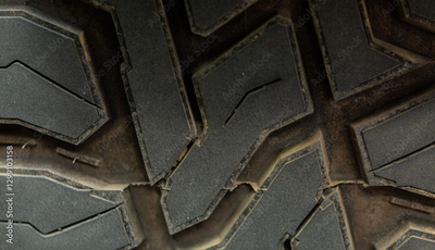 Close-up of off-road tire surface,A Textured Surface: Close-up of a Tire Tread Pattern with Dirt