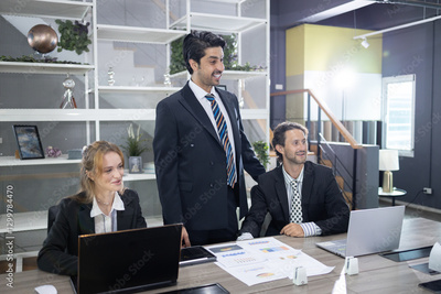 Business people professional teamwork talking brainstorming plan project in office. Success person cooperation meeting planning on table office.