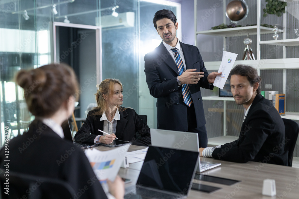 Business people professional teamwork talking brainstorming plan project in office. Success person cooperation meeting planning on table office.