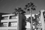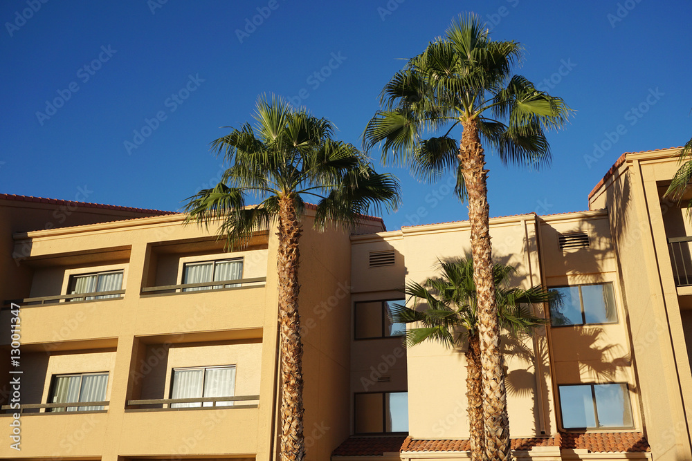 palm tree and hotel building in sunny day