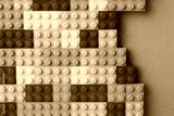 Constructor toy. Many colorful building blocks on light blue background, top view