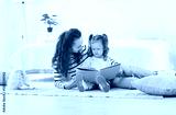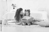 Happy smiling mother and baby daughter, babysitter nanny enjoy book story reading, friendly loving family at home close enjoy good time together, parent with cute little girl enjoy weekend, bonding