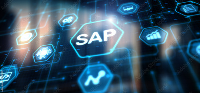SAP - Business process automation software and management software. Icon on virtual screen