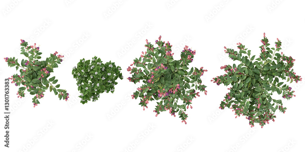 3d illustration of Fuchsia flower plants on transparent background from the top view