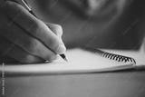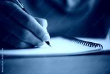 Man hand with pen writing on notebook.