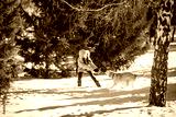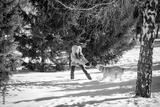 girl with a dog Labrador puppy playing in winter outdoors fun