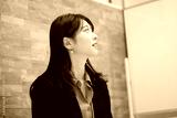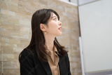 会議中に質問をする女性の横顔ビジネスシーン 見上げる話す