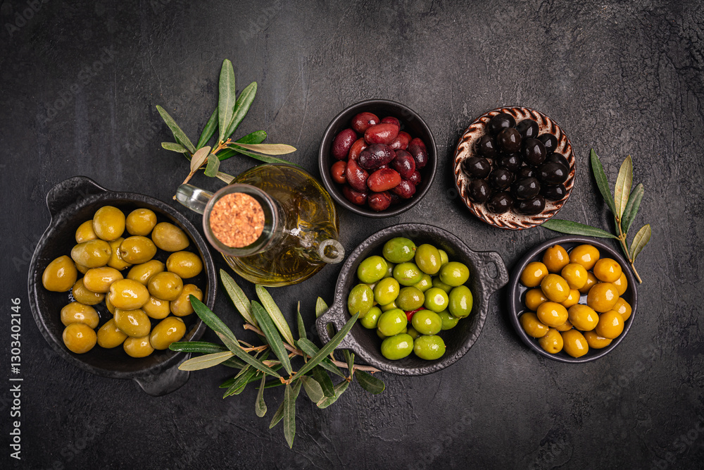 Green and black olives