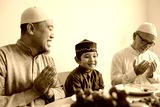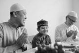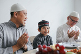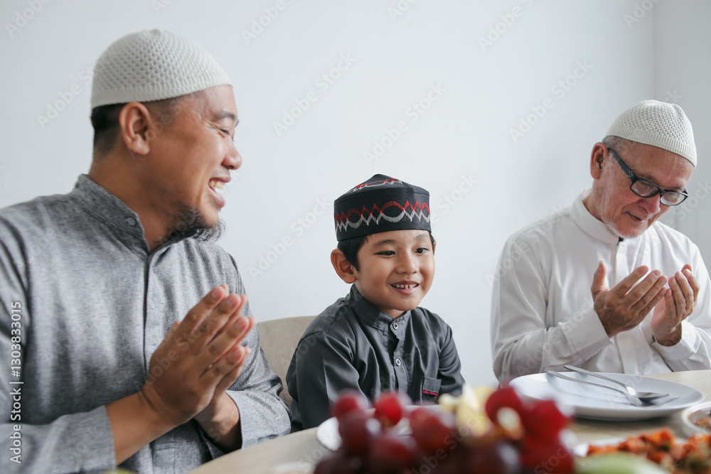 Happy Multi Generation Muslim Family Praying Together Before Having Lunch Together On Eid Moment