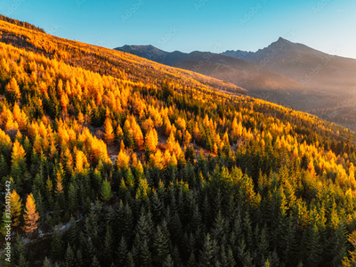 Sunset over Liptov region with and High Tatras mountains around. Krivan landspace, slovakia. Podbanske.
