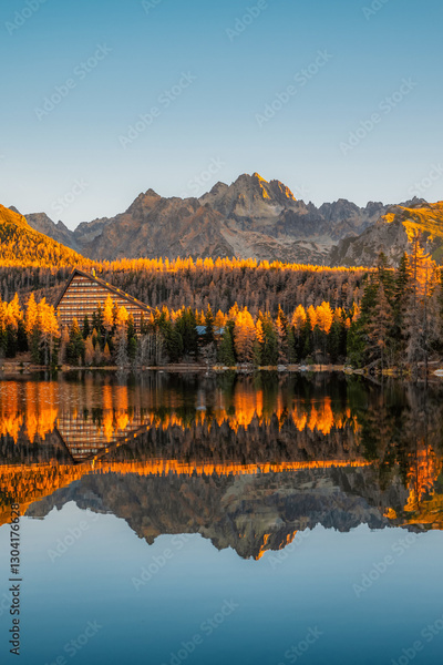 Mountain lake Strbske lake with view of the High Tatras National Park, Slovakia