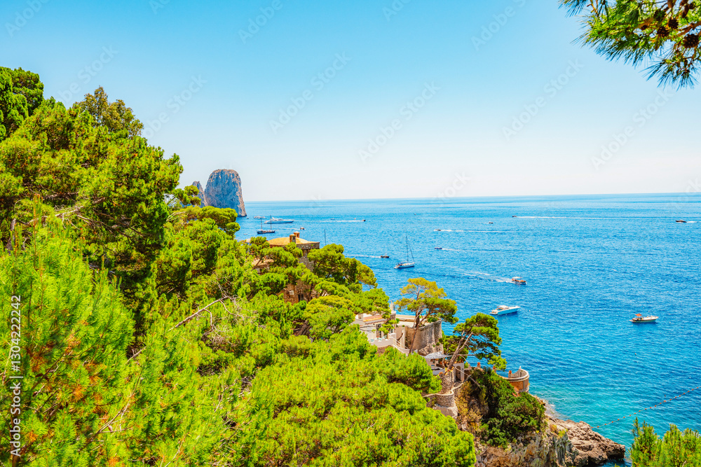 Via Krupp on Capri island in Italy. Faraglioni Rocks, Marina Piccola and Monte Solaro on Capri Island, Italy