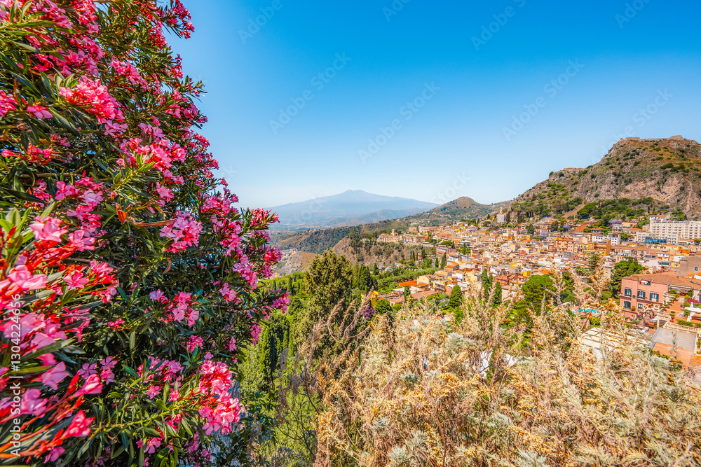 Ancient theater of Taormina with Mount Etna in the background, Sicily, Italy