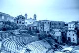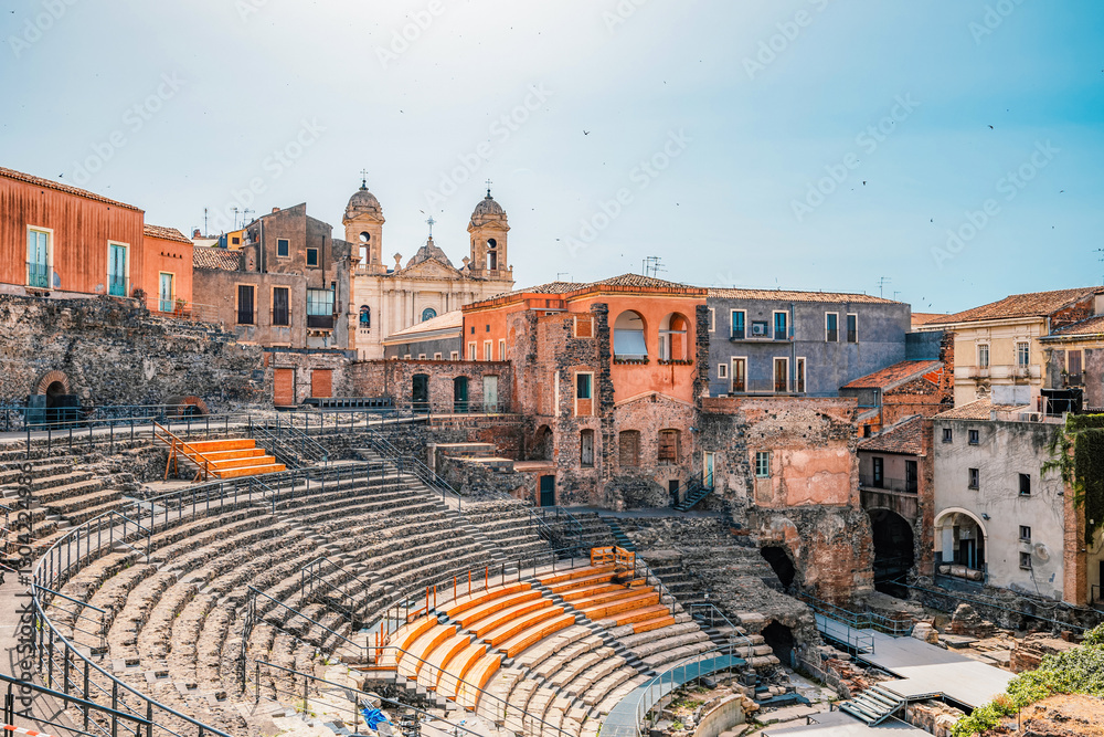 Ancient Roman theater in Catania, SIcily, Italy. Built from the limestone and black lava.