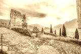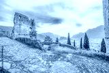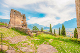 Arco castle ruins on cliffs above Garda lake, Trentino, Italy. Lago di garda
