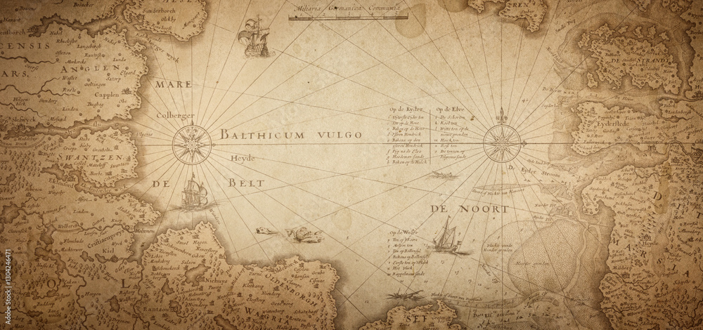 Old map collage background. A concept on the topic of sea voyages, discoveries, pirates, sailors, geography, travel .
