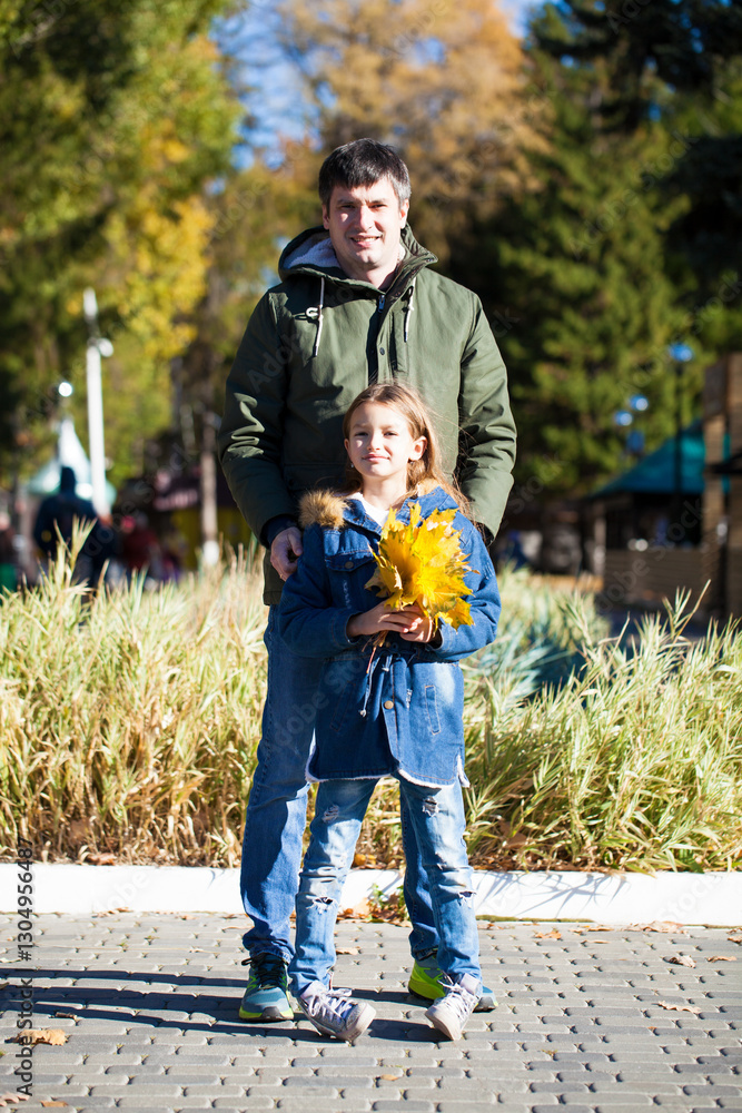 Father and little daughter in autumn park