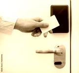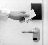 Man using contactless key in the hotel.