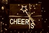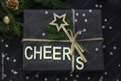 Stylish Сhristmas, New Year gift wrapping composition cheers with a deer and a branch of fir