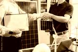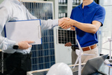 Two Asian engineers collaborate on a solar and wind energy project, discussing innovation and sustainability