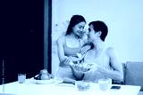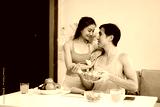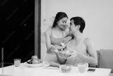 Fitness duo celebrating healthy living with fresh salad, fruits, and juice. A perfect balance of wellness, nutrition