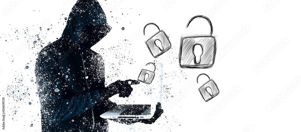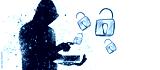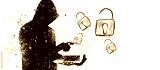 internet security concept. businessman using a padlock to protect a personal data from computer.