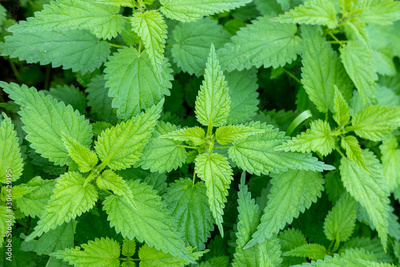 fresh nettle leaves, Green herbal plants in natural environment. Wild herbs and botany concept, natural health, healing plants, leaf structure