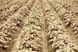 green potato tops, tuberous herbaceous plant, Solánum tuberósum, agricultural scene, agricultural land, farm life