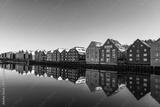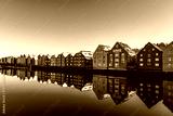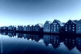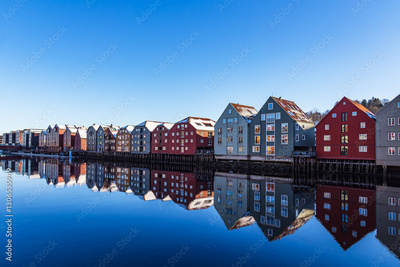 Blick auf bunte Häuser am Fluss Nidelva in der Stadt Trondheim in Norwegen